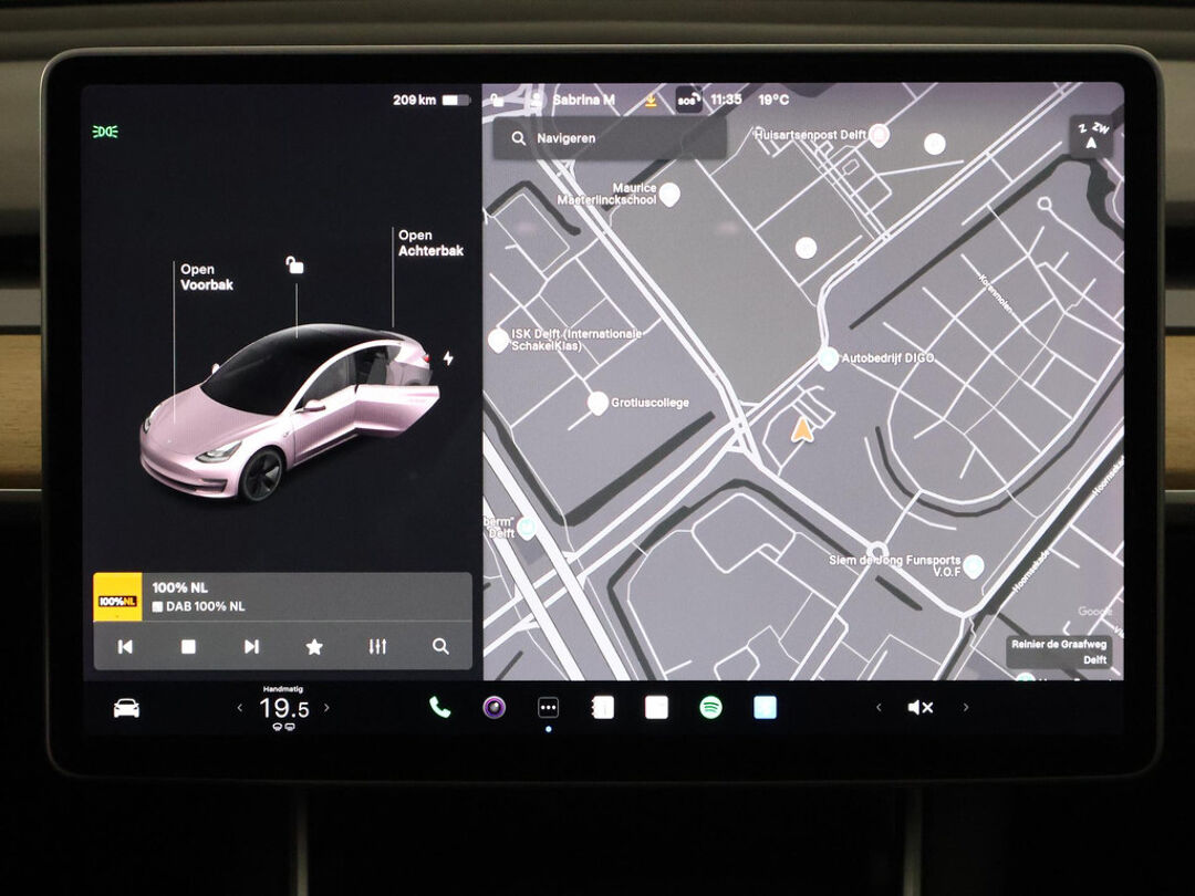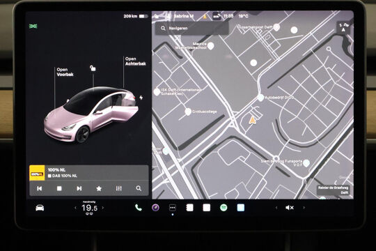 Nooit meer tanken. Een laadkabel volstaat om het accupakket van deze Tesla Model 3 op te laden. Met de combinatie van elektrische aandrijving en automatische transmissie manoeuvreert u soepel door het verkeer. Zit u goed? De stoelen zijn eenvoudig instelbaar dankzij de elektrische bediening met geheugen. Het glazen panoramadak laat meer licht binnen in het interieur en zorgt voor een magnifiek uitzicht naar buiten. Bij de rijke uitrusting horen ook 18 inch lichtmetalen velgen en in delen neerklapbare achterbank.