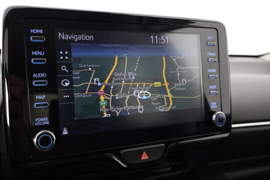 Het digitale dashboard ondersteunt u voortdurend met actuele, bruikbare informatie. De achteruitrijcamera maakt inparkeren gemakkelijker dan ooit. Met adaptive cruise control houdt deze auto automatisch afstand tot uw voorligger. In het zeldzame geval van een storing weet u nog eerder dan de monteur wat er mankeert. Uw smartphone met remote services geeft direct inzicht. In deze Yaris vindt u schakelaars op het stuur om het audiosysteem met dab-ontvangst te bedienen. Deze auto is voorzien van regensensor, buitentemperatuurmeter, automatisch dimmende binnenspiegel, lederen stuur, centrale deurvergrendeling met afstandsbediening en lederen versnellingspook.