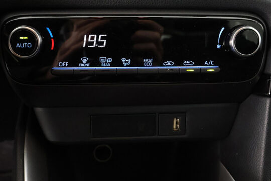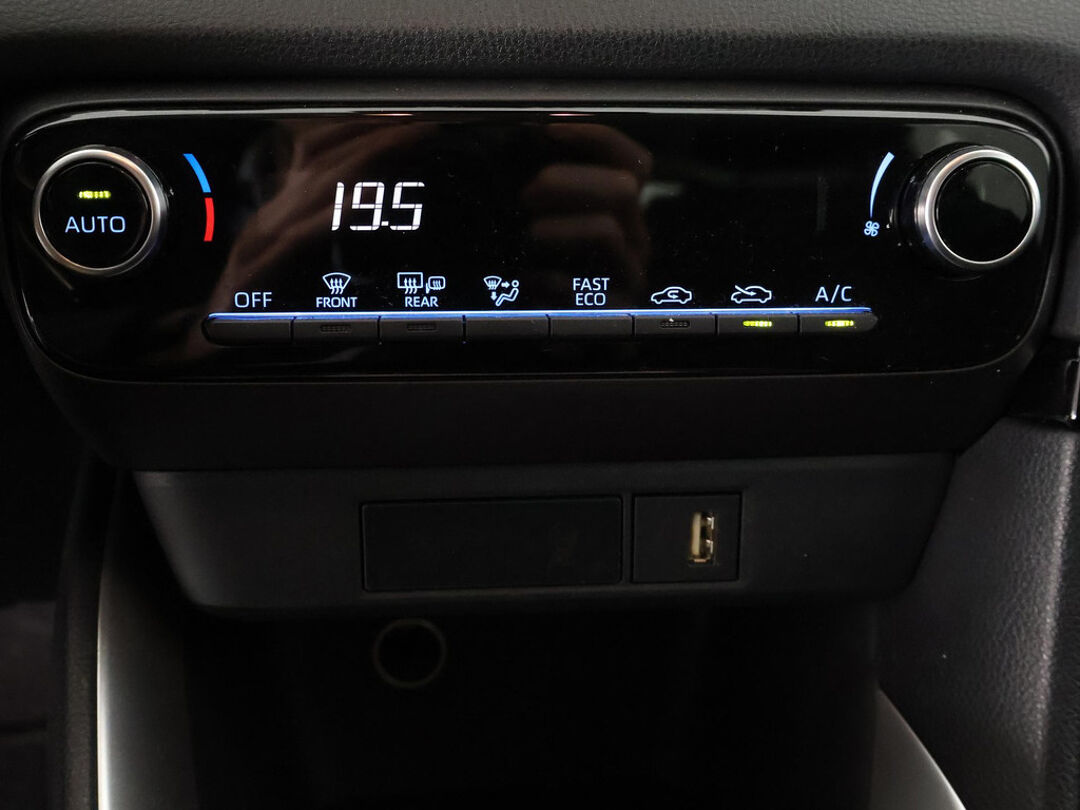 Met de achteruitrijcamera ziet u precies wat er achter de auto gebeurt. Adaptive cruise control is een comfortabele en veilige optie. Het systeem reguleert de snelheid en houdt automatisch afstand tot uw voorligger. Waar u zelf ook bent, u staat altijd in contact met de auto via de app op uw smartphone. Zo controleert u uiteenlopende functies, ook op afstand. Bij de luxe van deze auto hoort ook automatische airconditioning. Zonder uw ogen van de weg te halen bedient u de radio met de audiobediening op het stuurwiel. De Toyota is standaard voorzien van: DAB ontvangst, regensensor, buitentemperatuurmeter, lederen stuur, centrale deurvergrendeling met afstandsbediening en lederen versnellingspook.