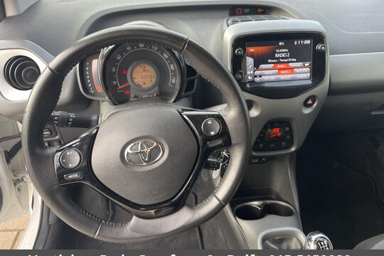Zodra u naar de 'R' schakelt, gaat de achteruitrijcamera in werking en heeft u een perfect zicht op alles wat zich achter de auto afspeelt. Onderweg geniet u van de kwaliteit van het audiosysteem met DAB-ontvangst. De bediening is gemakkelijk via knoppen op het stuur of via spraak. Ook over uw schouder ziet u onderweg niet alles wat er aan de achterzijde gebeurt. Daarom heeft deze Toyota Aygo een achteropkomend verkeer waarschuwing. De automatische airconditioning zorgt onder alle omstandigheden voor een prettige temperatuur. U bent in deze Toyota ook voorzien van lederen stuur en versnellingspook en centrale deurvergrendeling met afstandsbediening.